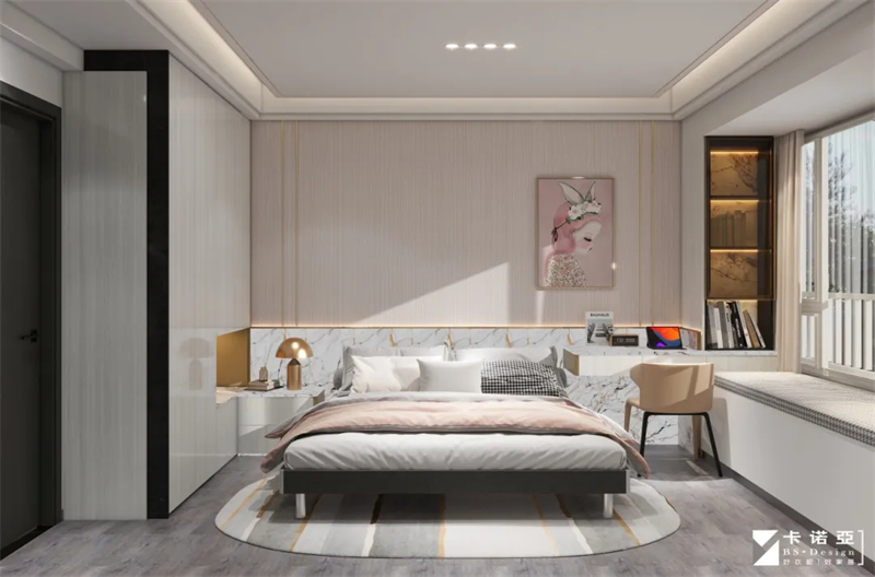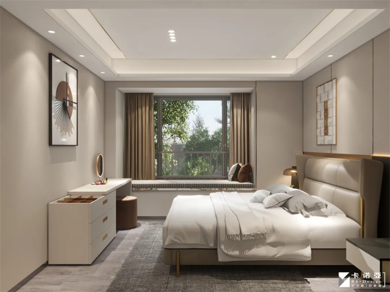 卧室的设计更注重舒适度与功能性,集睡眠、梳妆、收纳于一体,步步皆优雅,打造五星级酒店般的居住体验。