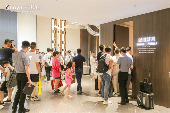 卡诺亚与时代同频,顺应整家定制大势,与消费者需求共振,经过不断的匠心钻研,极简风格柔道系列新品在建博会上一经发布,引发全场热捧,各大媒体争相报道,热力全开,现场爆棚,成为观展商追捧的流量焦点。