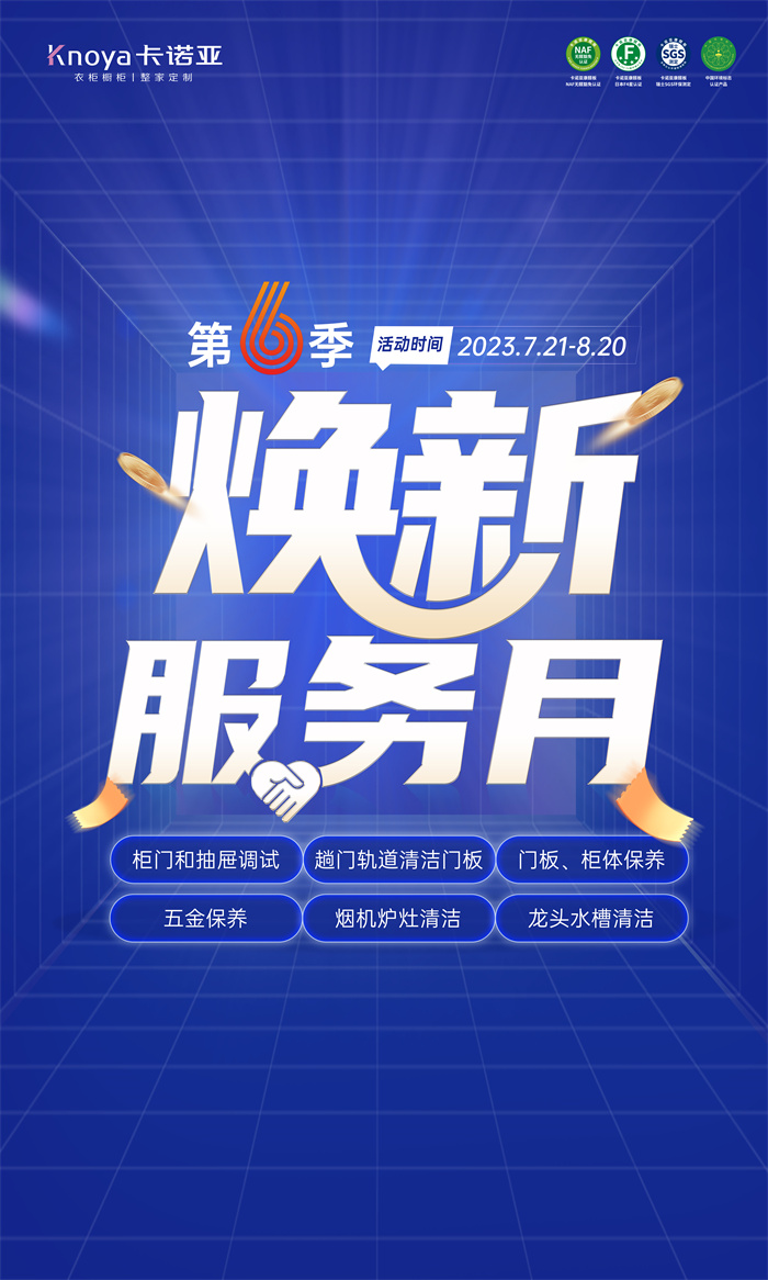 本次焕新服务月,不但有感恩回馈新老客户专享焕新服务活动的各项钜惠,同时针对老客户,除了常规的上门维护保养服务之外,如果老客户家里需要焕新,包括五金升级更换、配套家品更新、衣柜护墙更换等,还有推荐新客户,均可独享3大焕新专属优惠活动和各种福利。