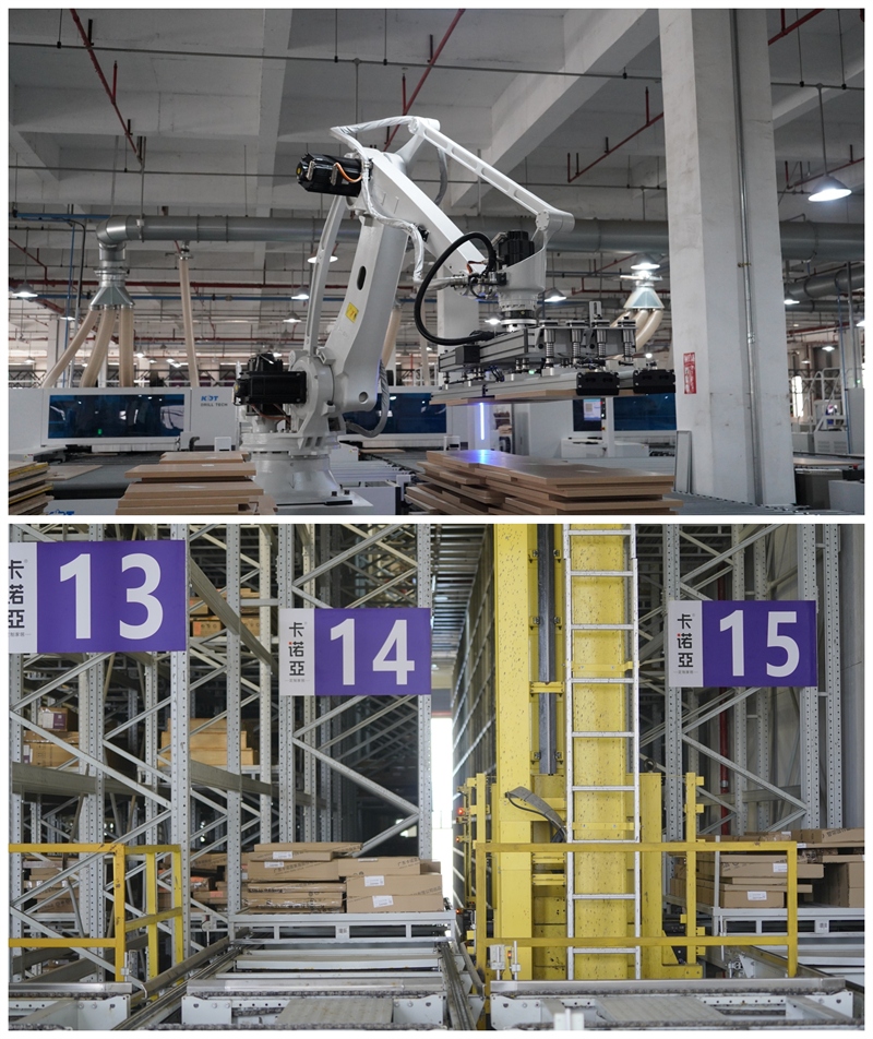 罗亚全屋定制共享卡诺亚在清远及广州的两大工业4.0智造基地,包括德国豪迈、意大利比雅斯、CNC数控、机械臂等世界级数字设备,拥有上万个仓位的智能立体仓,赋能产品高质高效、按时交付。