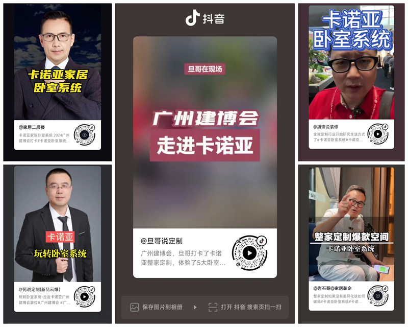 本届建博会,卡诺亚打通线上线下流量场,横向做辐射,纵向做渗透。以“卡诺亚卧室系统超级IP”为传播主线,特邀抖音达人@旦哥说定制、@娜仁格日勒、岩石哥@家居装企、@家居二层楼、@苑说定制、@胡锋说装修,小红书达人@ Snow雪芙、@爱生活的阿胖,以及权威媒体搜狐焦点家居、慧亚招商网、中华全屋定制网等纷纷前来卡诺亚展馆,进行专业探展与沉浸式体验,以直播、短视频等形式,集体为卡诺亚卧室系统背书。这些家居顶流KOL,展前利用短视频打Call造势,展中第一时间多维度现场体验卡诺亚卧室系统的诸多亮点,为卡诺亚卧室系统在建博会上强势吸睛助力,展后则深度解析卡诺亚卧室系统作为切入点,带动整家定制的全案服务与成交推广的财富密码。