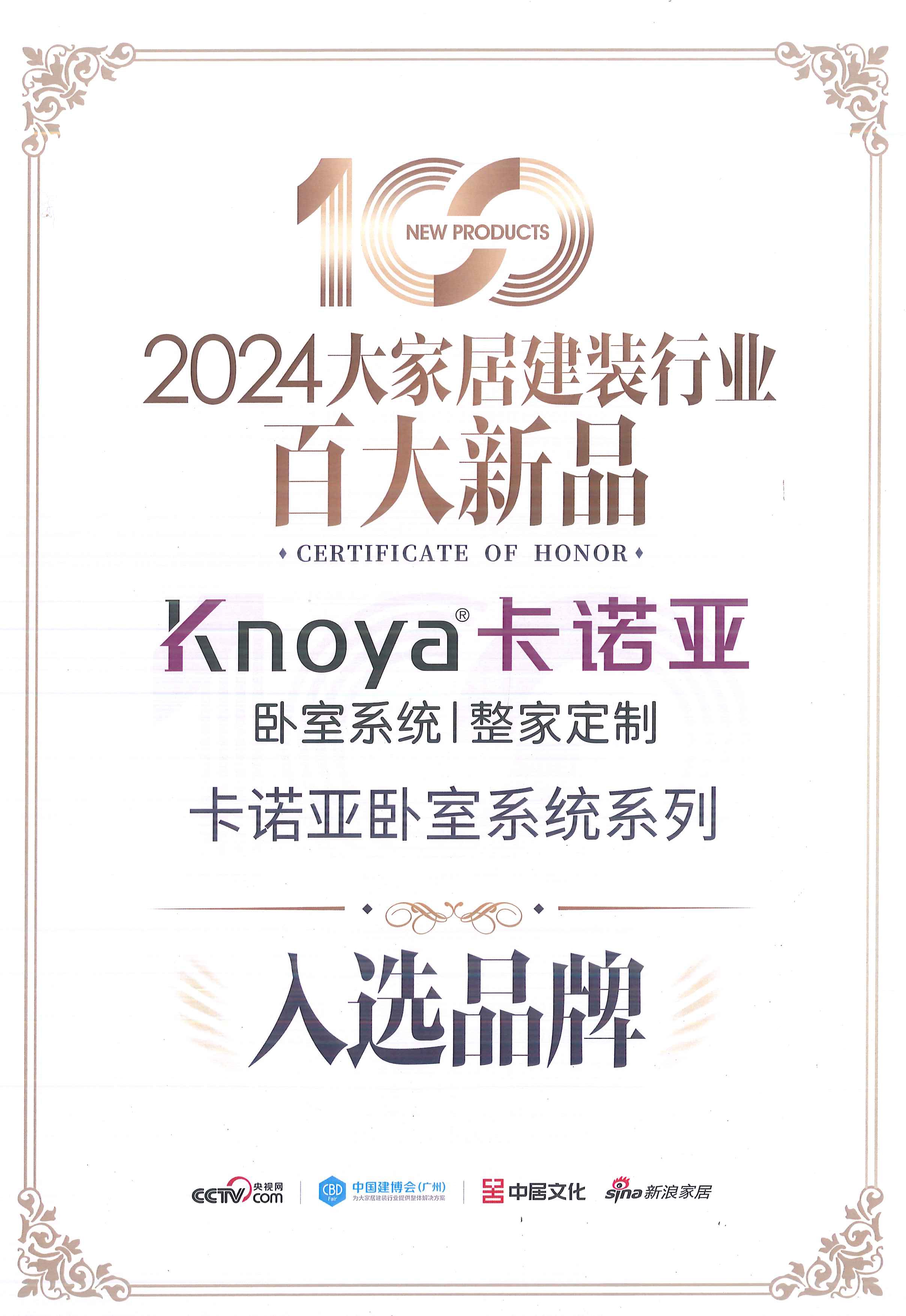 据介绍,此次评选是主办方围绕市场选择、设计理念、工艺革新等多个方面,从数千个品牌中评选出100个入选品牌,入选项目均为当前国内家居建装行业的“佼佼者”。卡诺亚卧室系统系列获此殊荣,如此硬核的产品力源自23年专注定制家居领域的专业积淀。