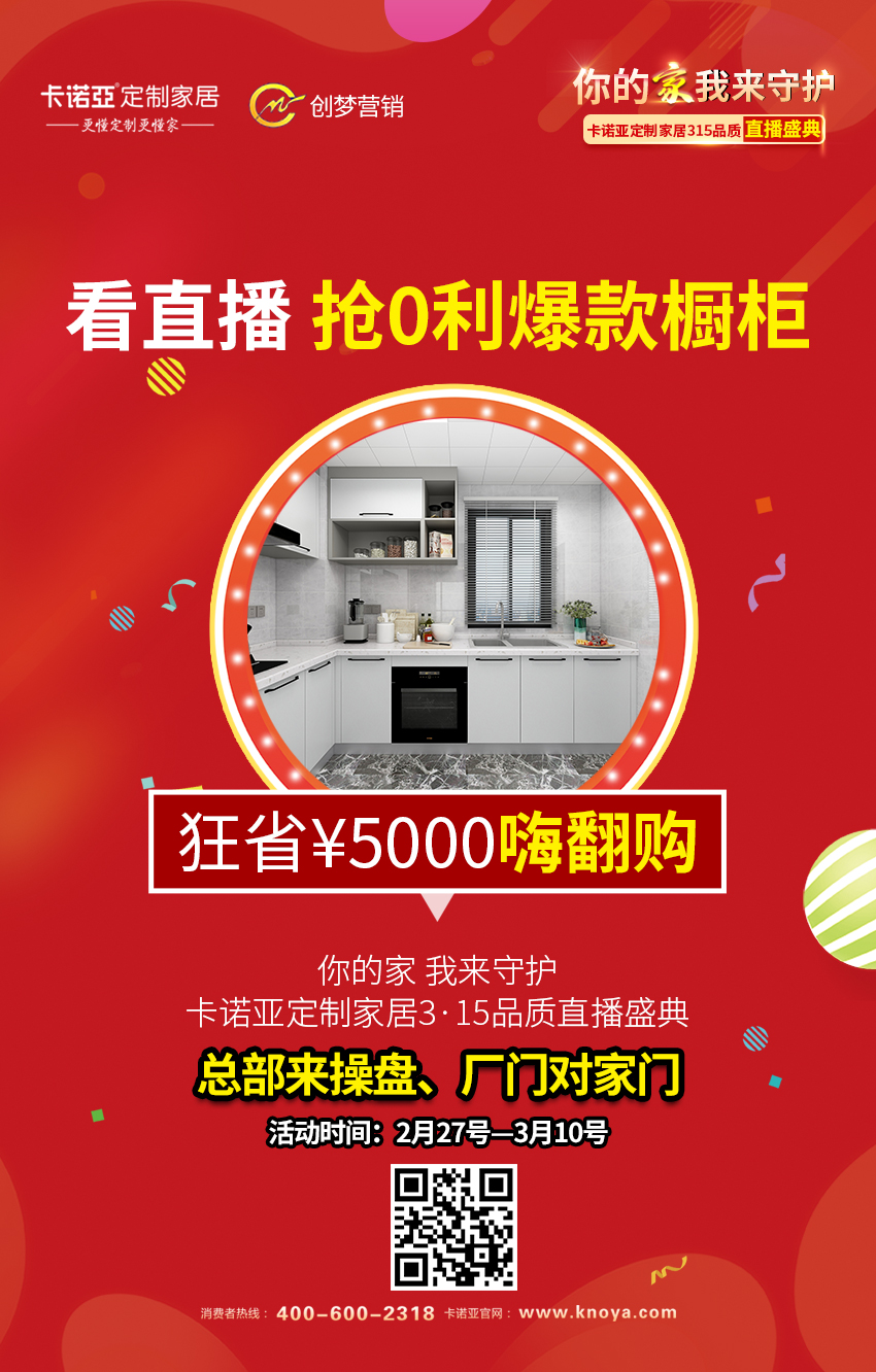 PS: 最新上线的「卡诺亚3.15品质直播盛典—在线抢工厂,直播抢福利」,足不出户定制梦想厨房,爆款厨柜直降¥5000,更有机会抢巨额百万红包雨,抽取家纺、床垫、电子秤等各类大奖喔~