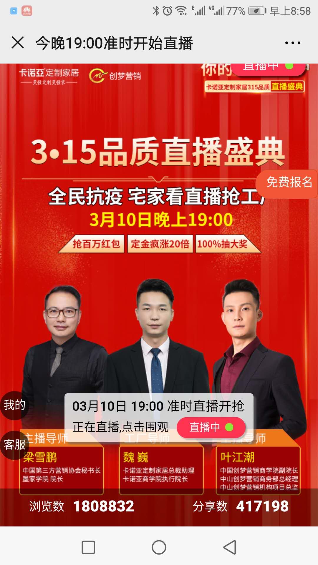 2月27日-3月10日共13天,卡诺亚开展了“你的家、我来守护——卡诺亚315品质直播盛典”活动,以180万+的浏览数、在线订单8278单、销售总额逾3亿的业绩,再度刷新了行业直播营销的战绩。