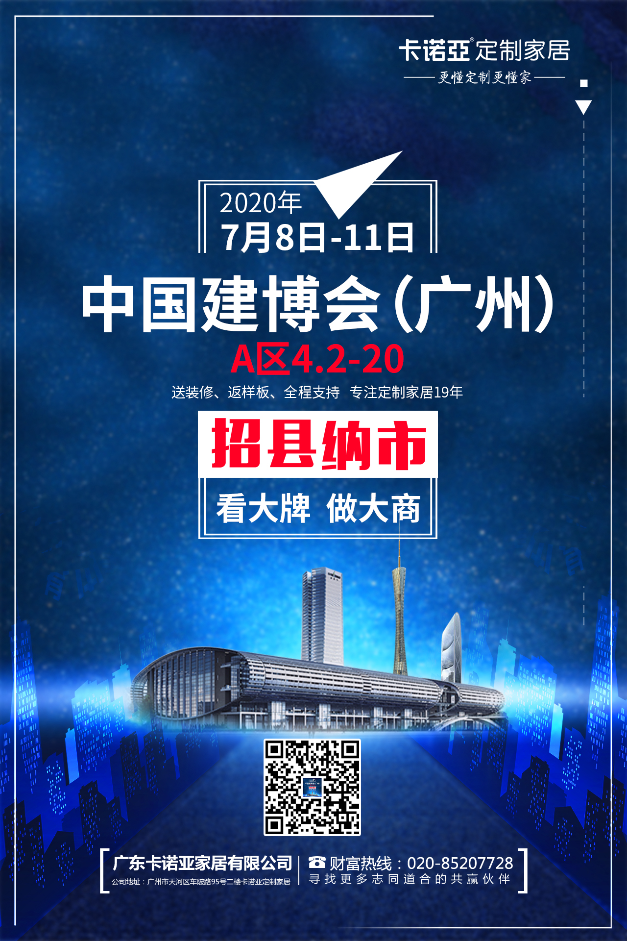 跟上时代趋势,对创业者而言就是“选对一个行业,成就一种高度”;发挥个人优势,就是众所周知的“选对一个品牌,成就一生事业”。7月8-11日到广州建博会卡诺亚展位A区4.2-20,选更懂定制更赚钱的“卡诺亚”, 趋势+优势兼得,看大牌、做大商,就等你来。