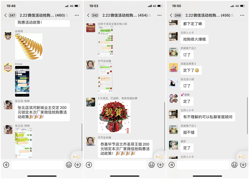 2月13日及15日,第一波总部操盘的全国微信抢购惠爆破活动刚结束不久,公司就立即号召全员线上会议,复盘全过程,总结经验和教训,又迅速制定了2月22日第二波微信爆破活动的计划,同样取得了辉煌的业绩。