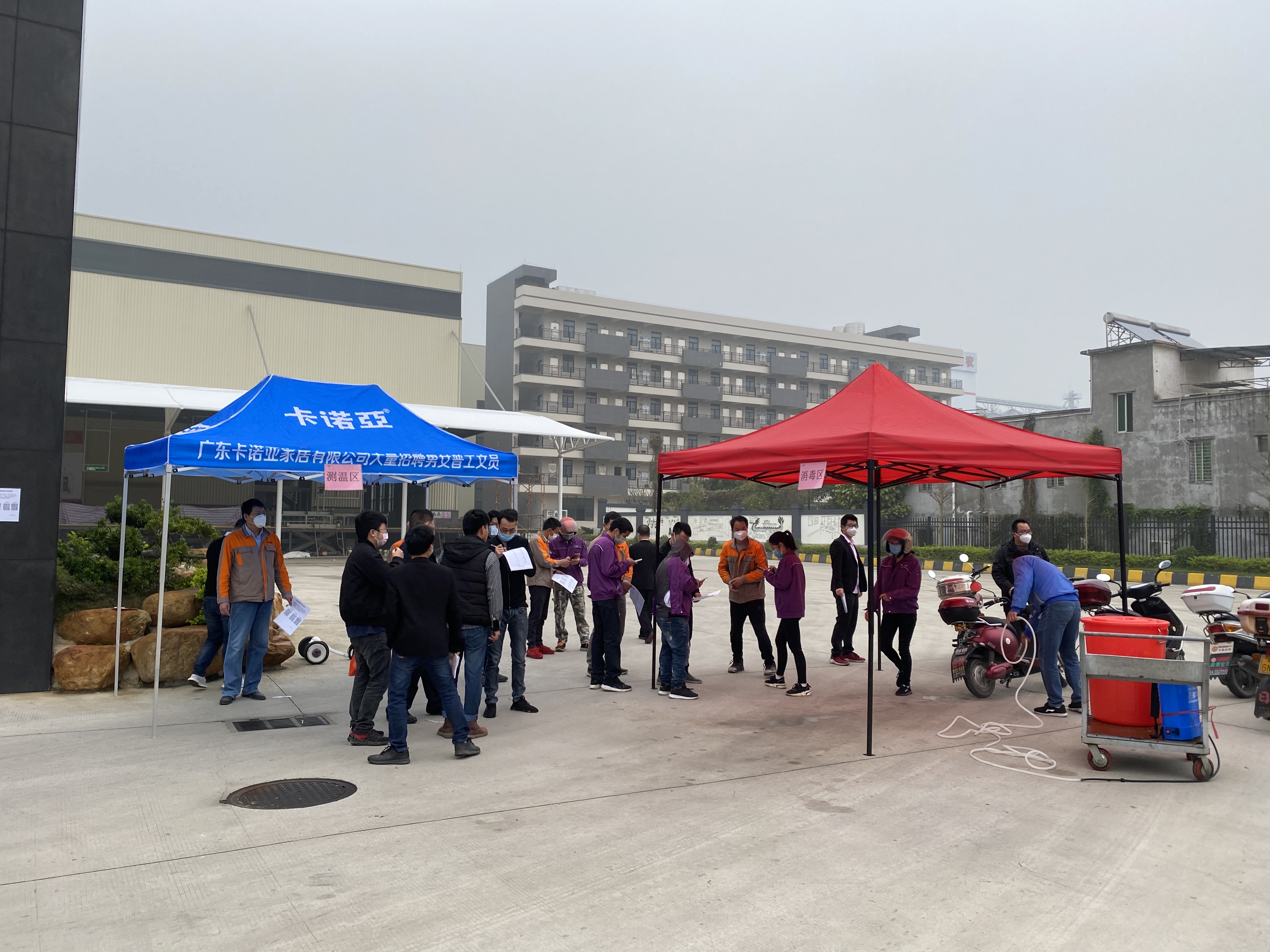 2020年伊始,一场突如其来的新型冠状病毒肺炎疫情打破了原本祥和安宁、家人温馨团聚的春节假期。疫情当前,岗位就是战场,防控就是责任。疫情防控关乎生命,复工复产关系民生,两者关系紧密、缺一不可。卡诺亚响应国家号召,立足于一手抓实疫情防控,一手抓紧复工复产,经董事会决议,公司申请、政府批准,卡诺亚广州花都及清远两大智造基地于3月9日正式复工。