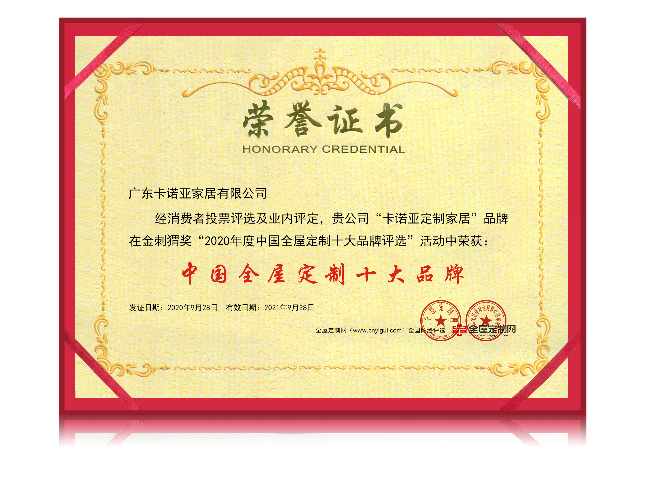 9月28日,由中国建材家居行业权威媒体平台腾王网络传媒主办的第二届“金刺猬奖”——“中国全屋定制十大品牌”网络评选活动榜单正式揭晓,卡诺亚荣获金刺猬奖“中国全屋定制十大品牌”奖项。专注定制家居19年,卡诺亚拥有良好的市场信誉和竞争力强的企业品牌及空间定制产品,众望所归获此殊荣。