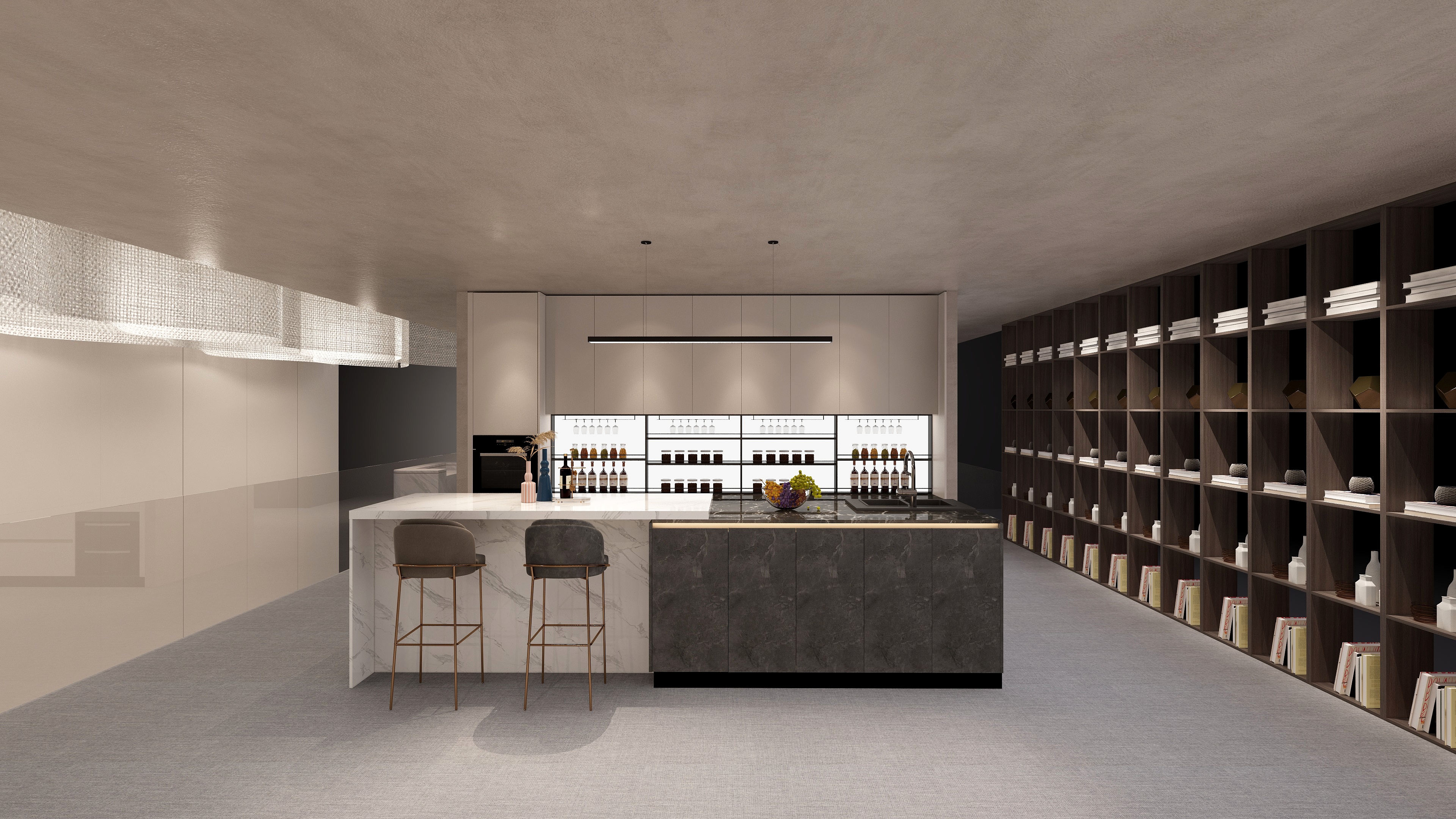 本届展会卡诺亚展馆,采用全新的MIX混搭设计理念,现代风格与轻奢风格创意混搭,展馆样板间给人耳目一新之感,采用同步国际潮流家居的轻奢花色,如涩黑、星光灰、云岩灰、和风木、流光浅棕、流哑浅棕等,通过设计师的巧妙搭配和撞色设计,淡雅的色调搭配莫兰迪色系,营造充满色彩立体层次质感的精致空间。