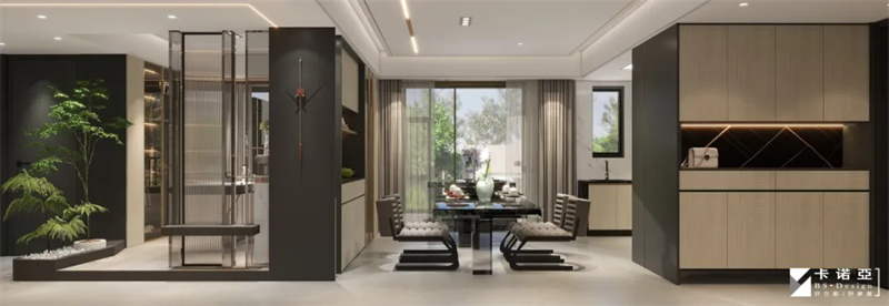 去客厅化设计,客厅与阳台之间茶台隔断,构筑一个最美的品茶区 ,客厅可同时满足会客、办公就餐,以及兼顾茶室功能,不再将客厅功能固化,而是让业主按照自己的使用习惯和生活方式进行随意使用。
