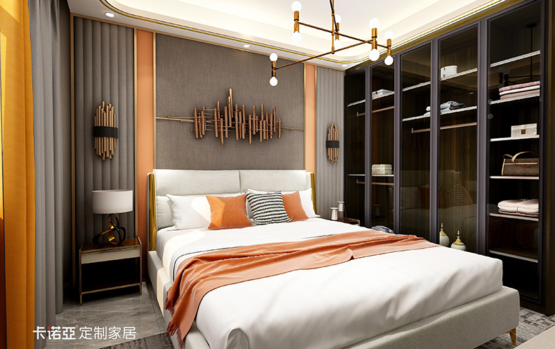 高级黑与高级灰做为表现,黑白的对比鲜明,总给空间一种大大方方的利落感觉。选用带有高级感爱马仕橙,黑色及碳灰色,来演绎一种“低调的奢华”,令空间质感更为饱满。