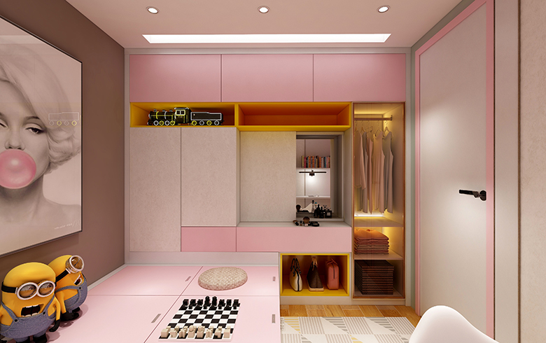本设计属于本人原创设计,采用本公司卡诺亚最新的产品搭与最热门的产品进行设计,客餐厅,主卧柜体采用热门产品御品木搭与新品321201进行搭配,用沉稳高雅的御品木体现了房子主人对生活的追求,对事业的沉稳。用清新又高端的321201来体现房子主人对美好生活的向往,类似于天然石的纹路或龙的鳞甲,有着一种高端的品质生活。二者搭配再用暖光进行照射能够营造出一种和谐温馨的环境,能够促进人与人之间的感情,女孩房/女孩功能房柜体颜色采用印象白外盖门采用卡诺亚新产品粉红佳人与321201作们板进行搭配,体现出女孩纯洁的心与少女心,女孩功能房还带有一点新品活力橙作为点缀,从而体现女孩对美的追求。