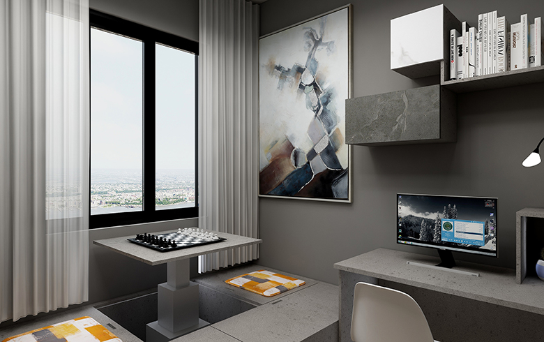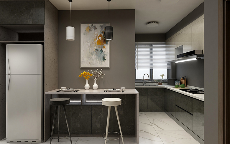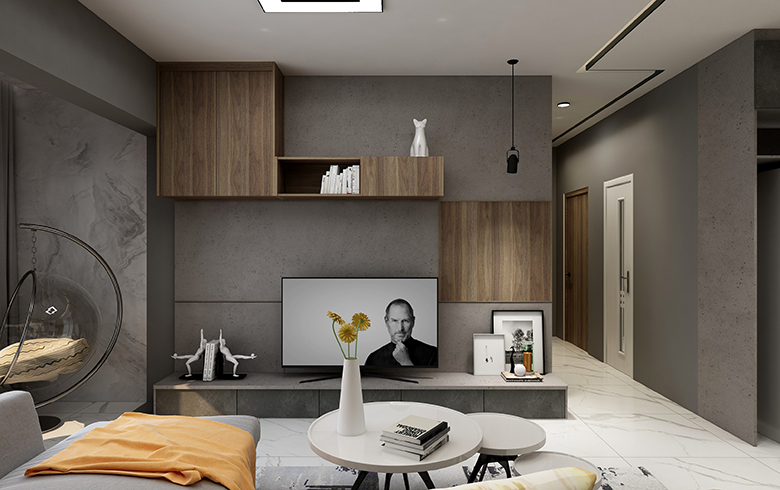 以黑白灰为主体色,的极简风格家居设计,配上一部分深色木纹,缓和空间色调。凸显出简约而不简单的现代简约风格设计。