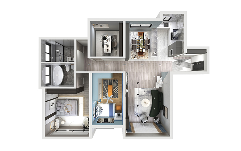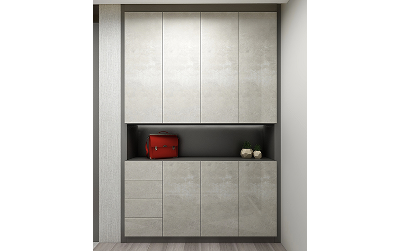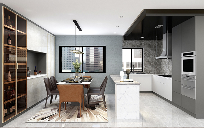 这个作品将材质巧妙的运用,客餐厅采用地砖与地板的材质区别,以及餐厅的地砖上墙等。电视墙大面积的颗粒板护墙和电视处的大理石形成材质对比等,都是在运用材质进行空间划分和区别。材质对于设计来说就相当于一个人的外形着装打扮给人的第一印象一样的重要,试想一下,一个连自己的着装外貌都不精于打理的,全身邋遢脏乱的人,又怎么会给人好感呢?