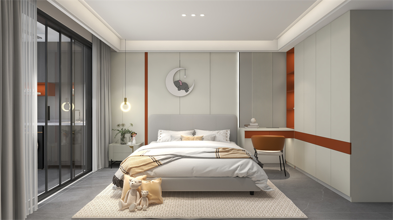 本案以现代极简风,采用黑白灰的色彩基调,三色过渡简单自然,彼此映衬,让人置身于一种静谧的家居氛围。空间中的橙色点缀,仿佛一术光,照亮了整个黑暗,生活需要光的指引,只要我们不断追逐,光永远在我们前方!设计理念:用有限的空间,做无限的设计,彰显个性之家。整家之美|第五届卡诺亚杯全国家居空间设计大赛
