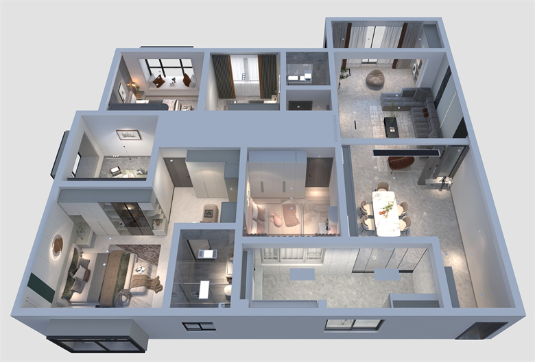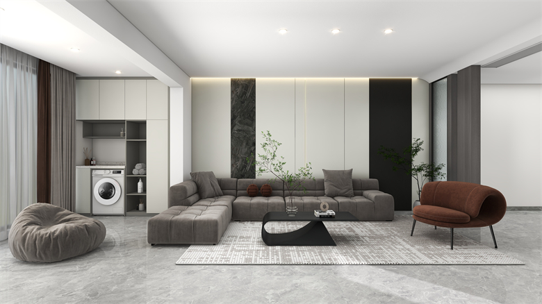 本案以现代简约风为主要设计特色,黑白灰色调相托,重视室内的使用功能,强调室内布局与功能分区,家居陈设与空间的密切配合。设计理念: 将设计融入人性 将家居带入休闲自在的情境整家之美|第五届卡诺亚杯全国家居空间设计大赛