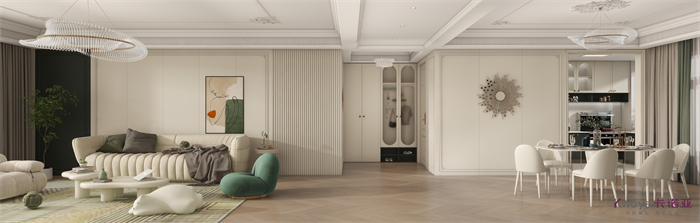 轻法式的氛围感,藏不住的浪漫和温馨。生活的浪漫,从家开始。螺青和奶贝颜色的强烈碰撞,尽显灵动,浪漫而温馨。对比色的反差并没有很突兀的感觉,反而多了一点复古优雅的气息。在这个家里的每处角落都成为风景,尽享平和时光,细品生活的美好。仿佛置身梦境之中。当兼具着温馨浪漫与艺术基因的法式风格邂逅家居空间,带来令人羡慕的精致品味--优雅,温馨,时尚,高端,生活被演绎的像诗一样优美。设计理念:每一套设计,都是唯一的。都源于我们的需求和梦想。整家视界 全案生活|第六届卡诺亚整家设计精英联赛