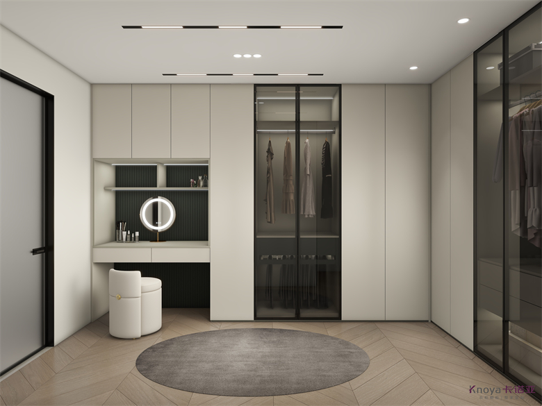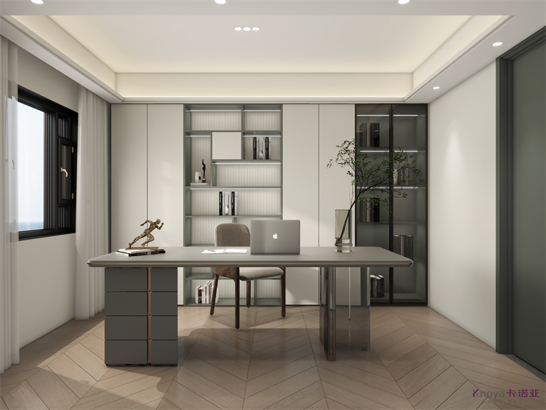 作品介绍:空间以简洁明快的浅色为主,无主灯的设计,极简中又不失淡雅,呈现明亮干净的美,再用小面积辅以明亮的色彩,凸显出空间层次。客厅的亮点在于电视背景墙,底下镂空的设计比较少见,电视背景墙后面便是休闲区,收纳柜和鞋柜衔接形成一个整体。餐边柜和入户玄关衔接,入门即是风景。开放式厨房和餐厅,让空间看上去更加宽敞。主卧青绿色点缀,增加层次,衣帽间梳妆台一体,L型衣帽间将空间分成两块,避免了卫生间对着床的现象。次卧阳台休闲区,有着一整面的收纳柜,可以看书,也可以娱乐。床背景上下分段,加上灯带增添氛围感。书房镂空玻璃门木门虚实结合。