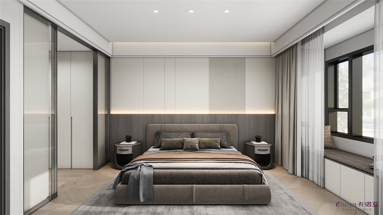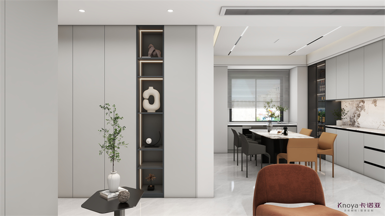 设计简介:对于空间的动线和视线所到之处都有着细节统一的设计,在对于景的配色处理上是环环相扣的,在材质选择上互相穿插,色彩空间相互呼应,将不同的材质融合,碰撞出不同的火花,追求内心永恒的潮流。设计师独到的见解,将整个空间衔接一体,又让每个区域都有自己的韵味。整个房间是现代简约风,干净整洁,墙壁、灯光、家具等细节处理,都展现了自己独特的风格和对美的追求,色彩淡雅却又不失质感,每处细节都为舒适度添彩。设计理念:设计源于生活,细节成就品质整家视界 全案生活|第六届卡诺亚整家设计精英联赛