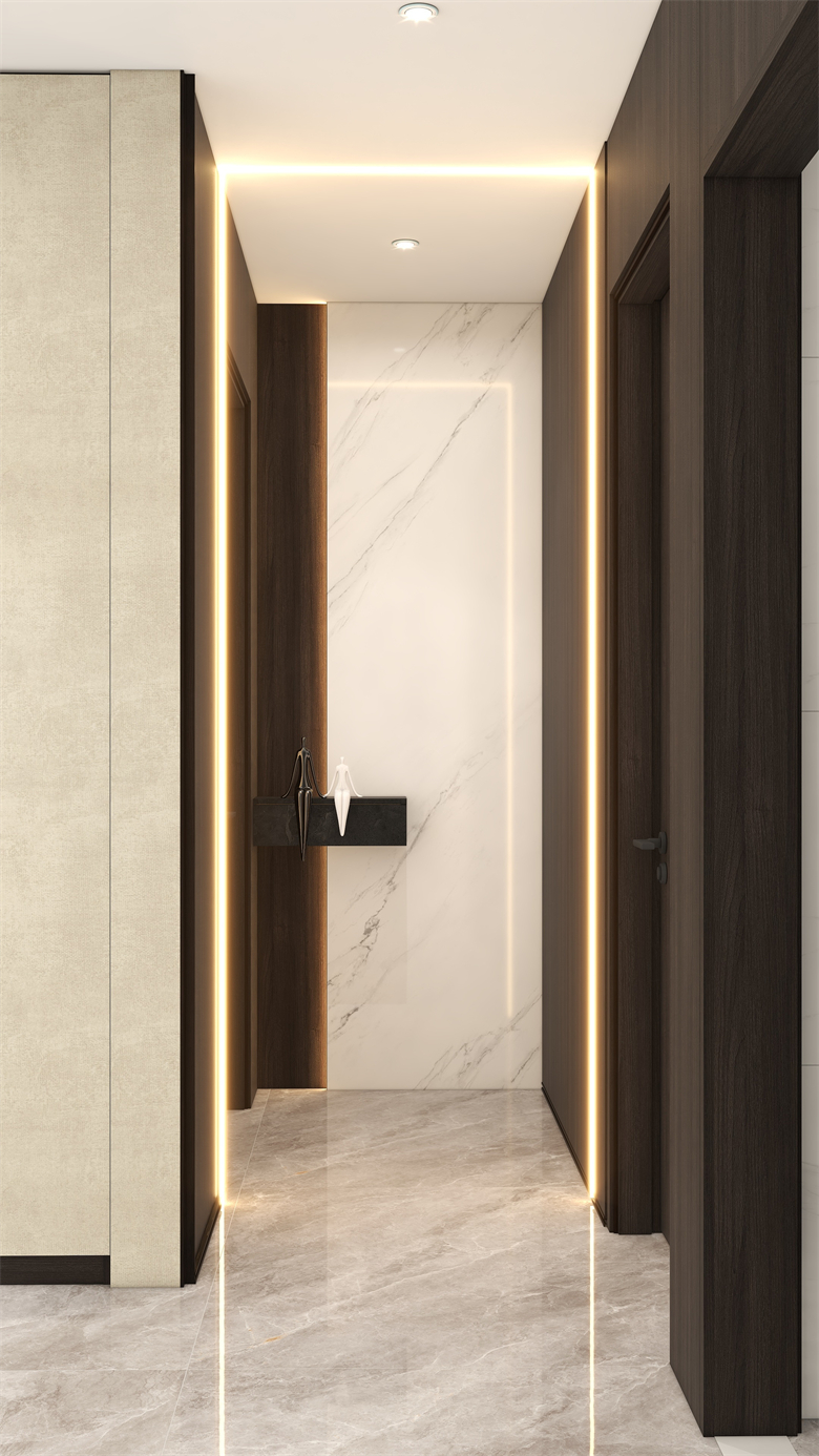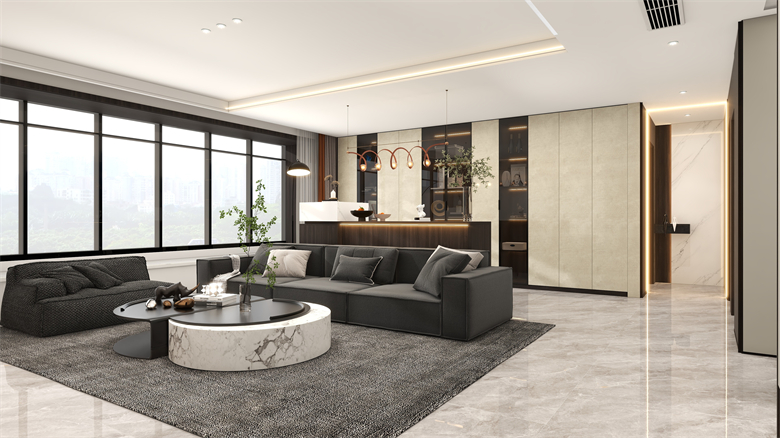 整体空间以现代轻奢风格的设计基调为主,布置上简约时尚的家具,营造温馨的家庭氛围;利落的线条搭配舒适质感的软装;开阔的空间为整个设计带来自由闲适;迎合业主家庭成员的需求,将空间最大利用设计化,暖色调的灯光布置,整体温暖舒适;各种材料相互协调,带来时尚的氛围。设计理念:聆听业主需求,提供最佳设计,创造温馨梦想家园。整家视界 全案生活|第六届卡诺亚整家设计精英联赛