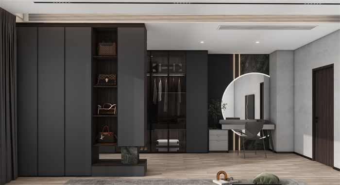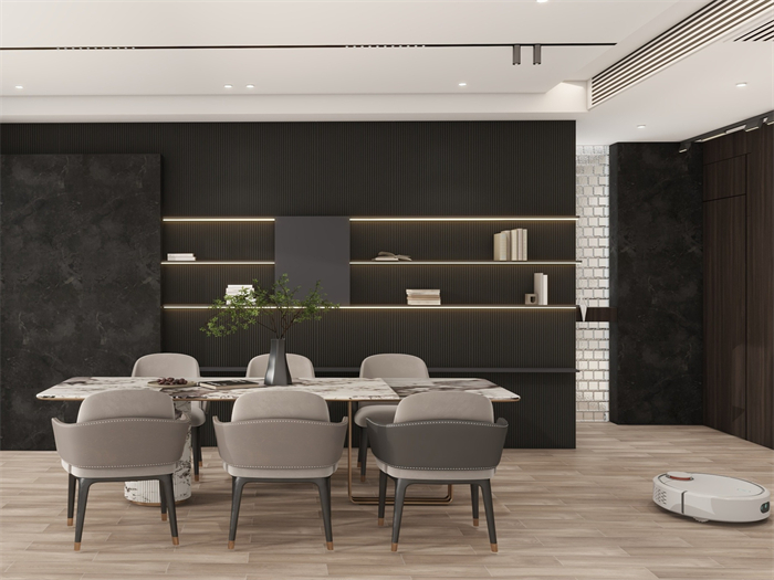 作品简介:人们的生活节奏相对较慢,故在设计阶段我希望整体的氛围是精致的、是有沉稳的氛围感。室内空间运用线条与几何造型的穿插组合,柔美的弧形造型,弱化空间棱角,客厅弧形造型,引入空间场景,悬浮顶内嵌灯光,用心感受这份柔和与温馨。它以高品质、设计感、舒适、简约为风格特色点。摒弃传统奢华风格。回归生活本真,家居空间给人时尚简约、气质优雅且不失温馨舒适的感觉。爱生活到极致,不留遗憾。