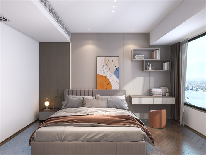 作品简介:设计方案是个现代极简的大平层,门板主材以水性漆为主,客餐厅是个大横厅。光线很好,柜门和护墙采用了深色系。使空间大气而不失沉稳。设计理念:用有限的空间,做无限的设计。整家视界 全案生活|第六届卡诺亚整家设计精英联赛