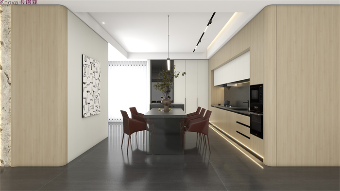 随着人们对品质家居需求的升级,卡诺亚顺势推出“柜墙门一体”整家定制解决方案,为消费者提供橱柜、衣柜、护墙、木门等品类。弧形护墙板因其流畅的曲线艺术之美,更优的空间利用率,以及新颖大气的风格,成为当下“柜墙门一体”浪潮中的热门。