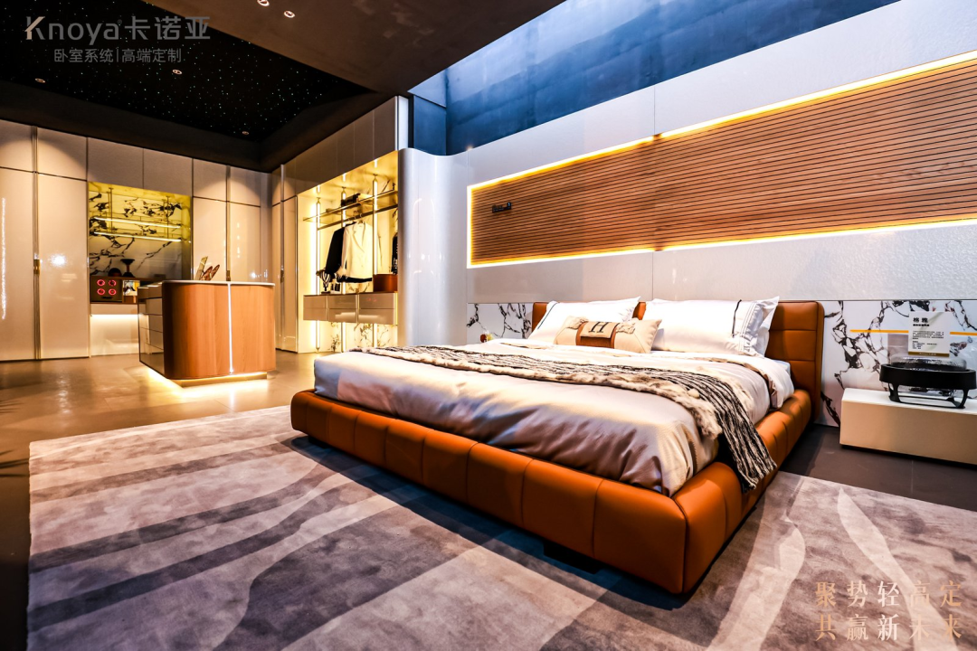 从战略落地到生态构建,卡诺亚以系统性思维重构轻高定价值链。卡诺亚董事兼副总裁赖永精在采访中拆解了六维升级路径:以卧室系统为差异化产品核心,通过终端场景化展示打破消费者认知壁垒,同时全面升级终端展示系统;以总部设计团队为引擎提升终端设计力;以服务体系优化保障体验一致性;以柔性智造支撑产品创新;以品牌营销深化价值传递。这种全链路协同,不仅消解了从概念到落地的转化痛点,更为行业提供了可复制的轻高定实践范本。