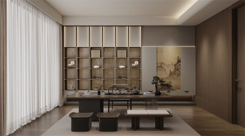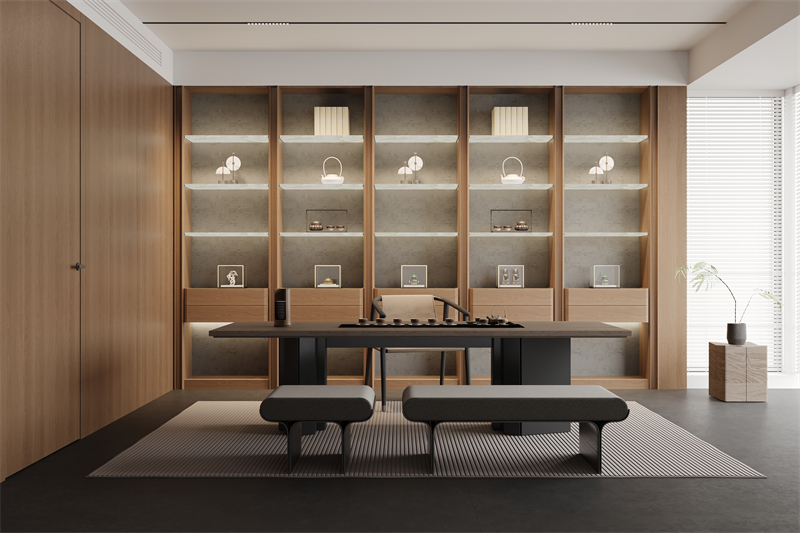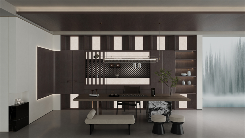 设计灵感:藏玉系列以在中国文化中象征“仁、义、礼、智、信”五德的玉石为灵感源泉,结合藏物之雅与玉之恒久的特质,延伸出“形、质、气、韵、神”的五重设计理念。旨在以小见大、步移景异,将古朴东方的风雅格调与现代生活的隐奢雅境完美融合,营造层次递进的空间情绪。