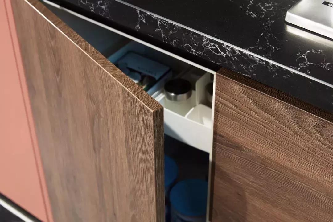 作为橱柜的颜值担当,选柜门主要看造型,然后看封边。不管哪种材质,封边处理好,柜门才不会有受潮的可能。
