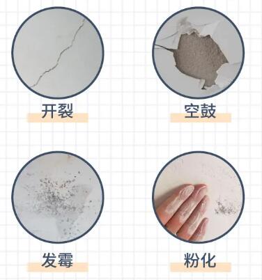 老房墙面即使看起来没什么问题,也要验明是否有开裂、空鼓、发霉、粉化等问题,如有,则必须全部铲除,重新批灰、刷墙。