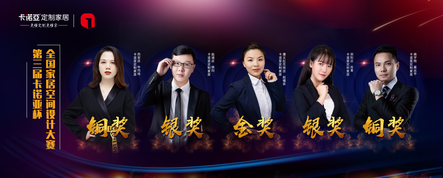 经过评委评分汇总统计,本次决赛金银铜奖得主诞生,他们分别是:金奖的金牌设计师获得者贵州遵义红花岗店赵福英,银奖的卓越设计师获得者湖南浏阳店肖青、江苏盐城店杨阳,铜奖的杰出设计师获得者卡诺亚商学院莫志平、陕西西安店牛巧祎。